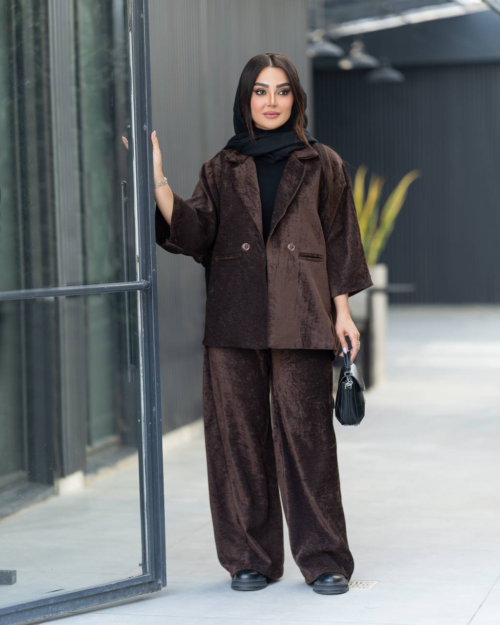کت و شلوار مجلسی زنانه جنس مخمل خاویاری