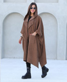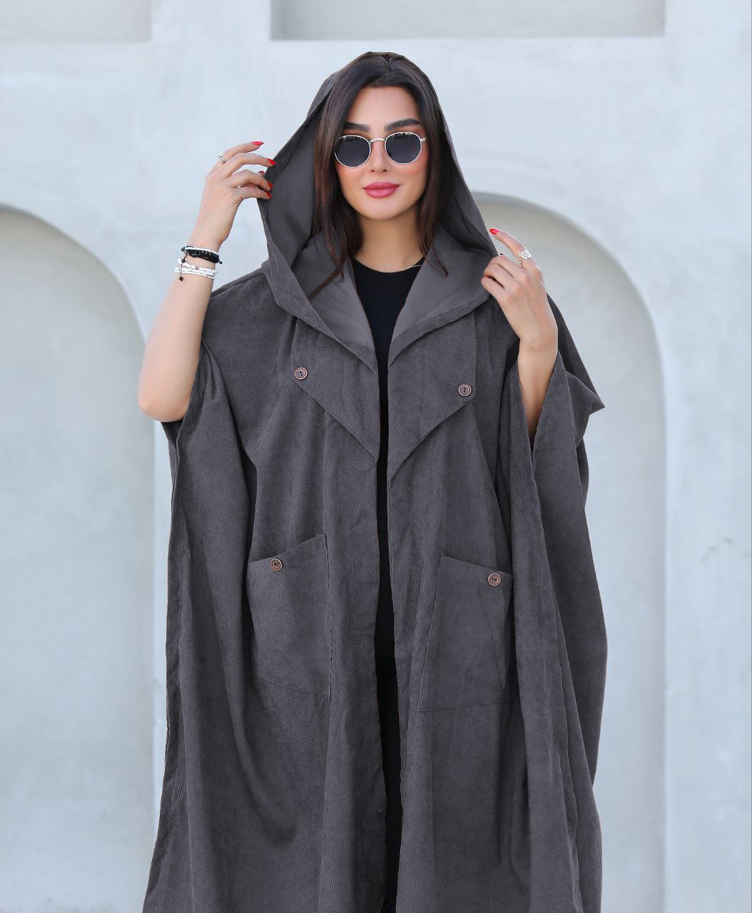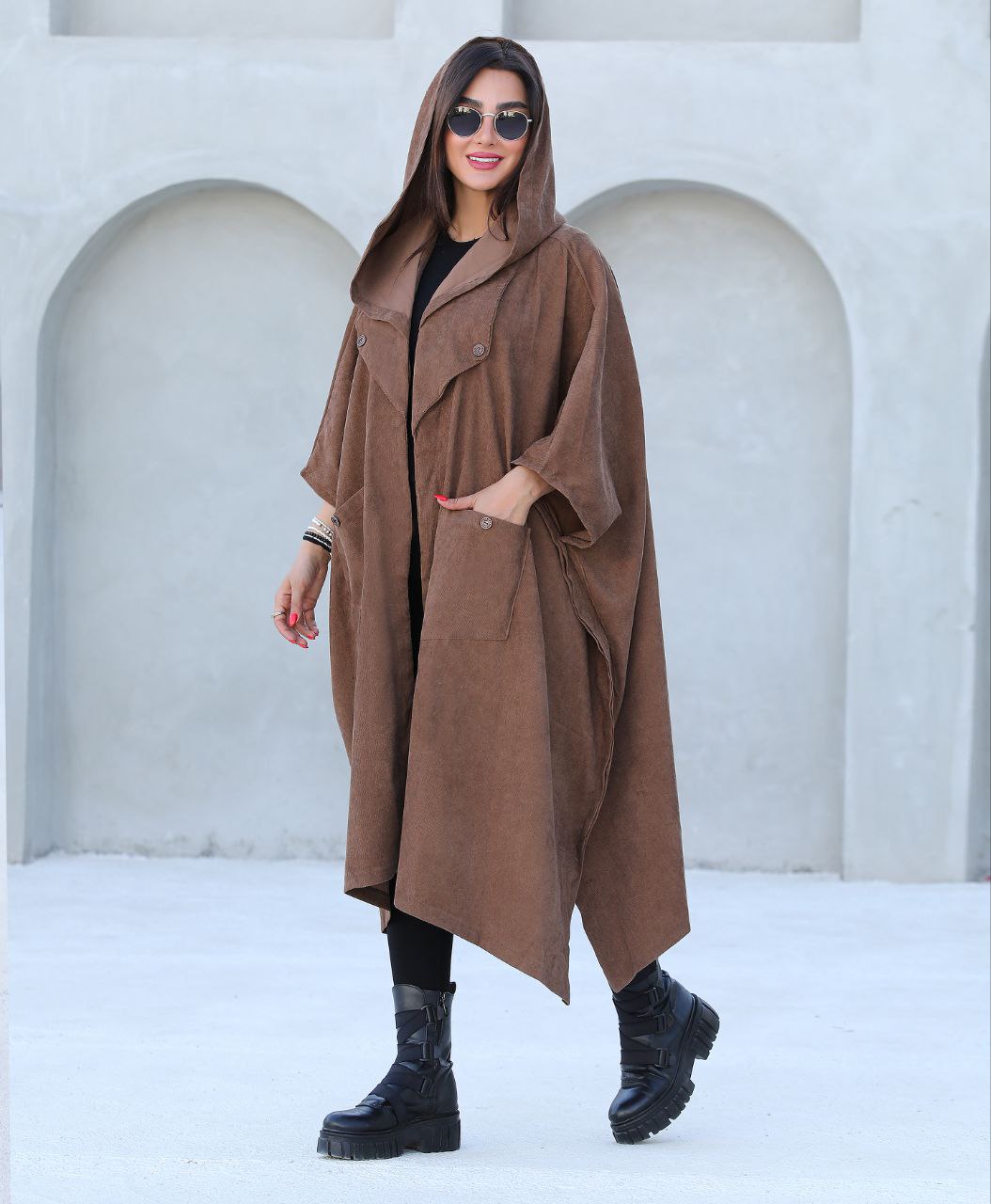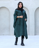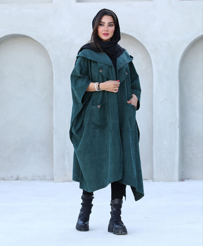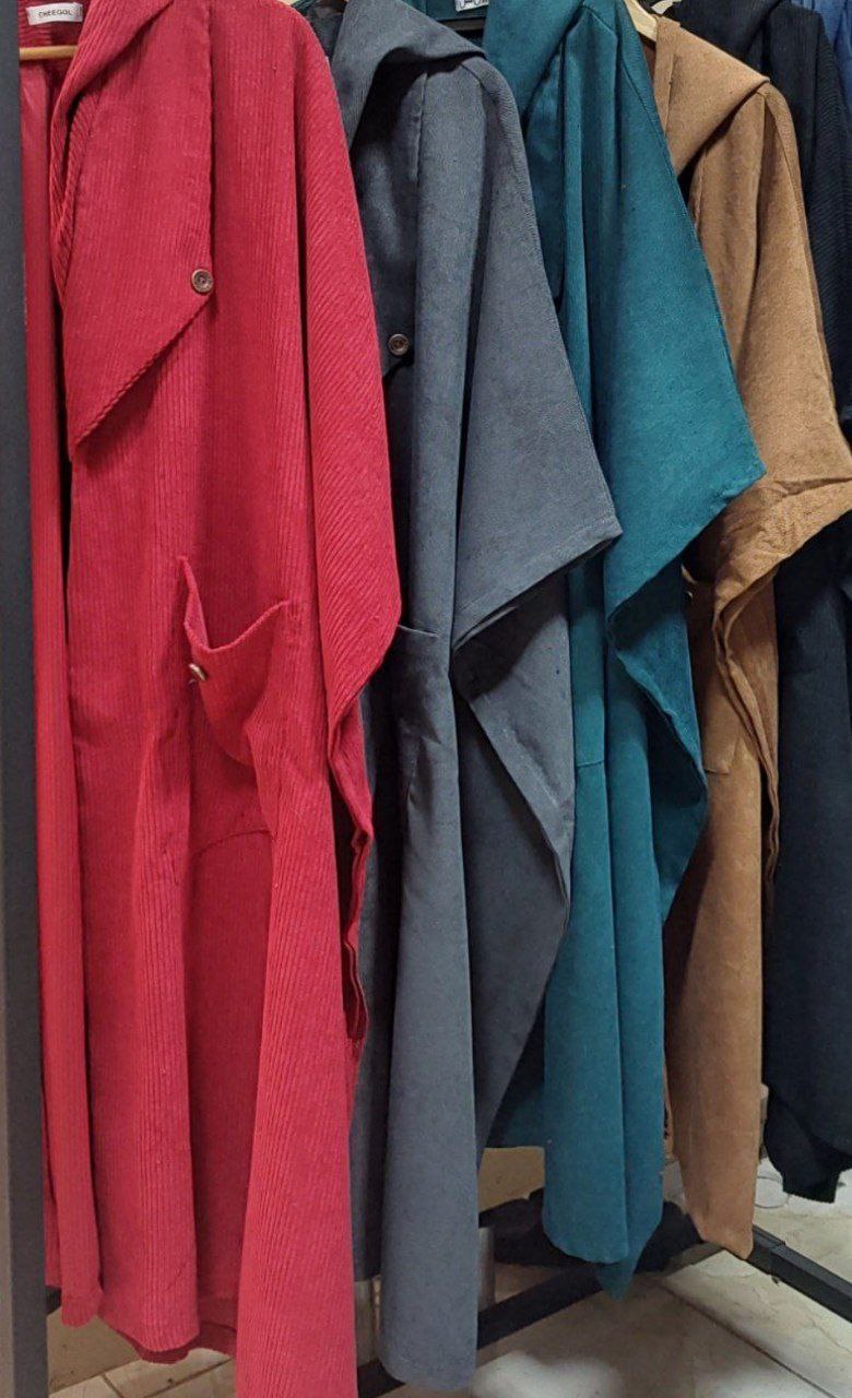 پالتو کلاهدار زنانه جنس مخمل کبریتی ریز