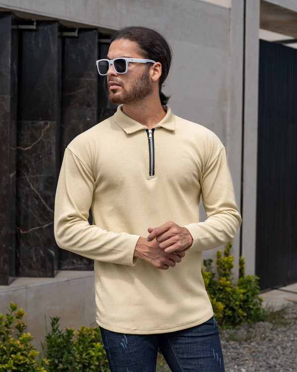 بلوز مردانه جنس بیسکوییتی مدل نیم زیپ
