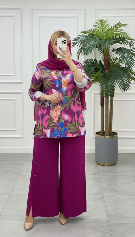 شومیز و شلوار مجلسی زنانه جنس شانتون مدل متینا