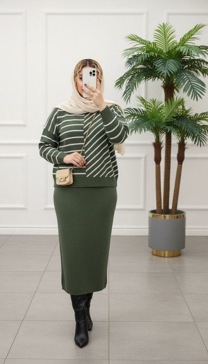 شناسه : #8091 🌷نام : ست شومیز دامن سوژه 🌷جنس : بافت 🌷رنگ بندی : خاکی, ذغالی, سبز زیتونی, مشکی, نسکافه ای 🌷سایز ها : فری تا 48 🌷 🌷قد دامن 88 🌷قد بلوز 62 🌷قد استین از یقه 82 🌷دور سینه 124 ✅بغل دامن چاک داره