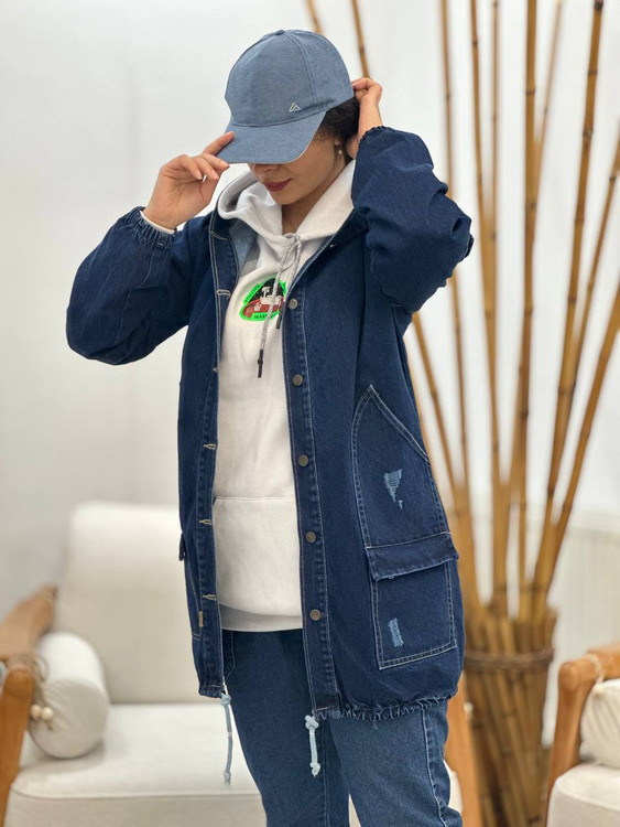 مانتو جین زنانه مدل کلاهدار پاییزه