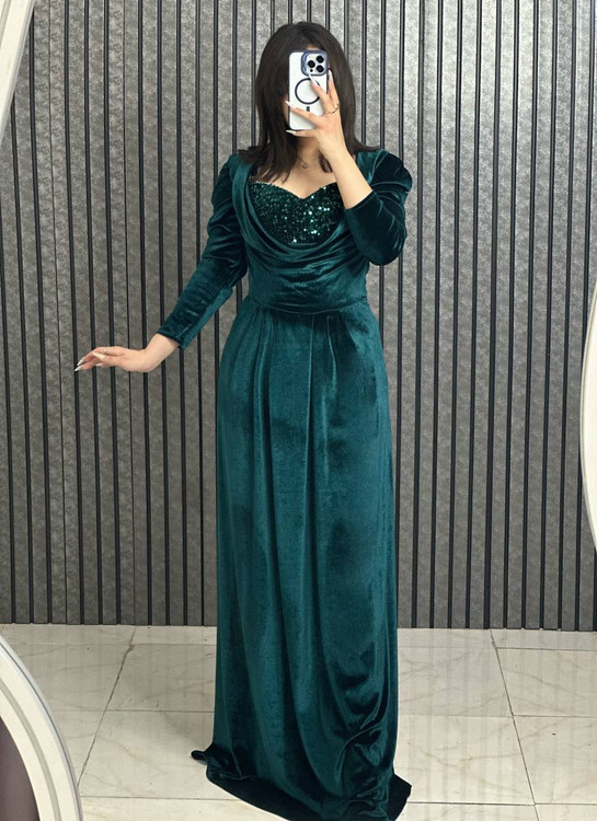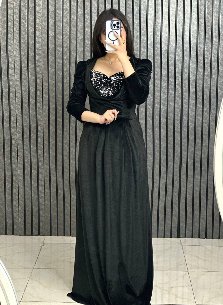 #️⃣شناسه کاربری : #994 🖋نام : دلارام 👚جنس : مخمل کره ای و خرجکار پولک 🌈رنگ بندی : مشکی , سبز , زرشکی , سورمه-ای , 📏سایزها : 2(40-42) , 3(44-46) , 4(48-50) , 💰 📝توضیحات : پشت کار زیپ میخورد قد 155