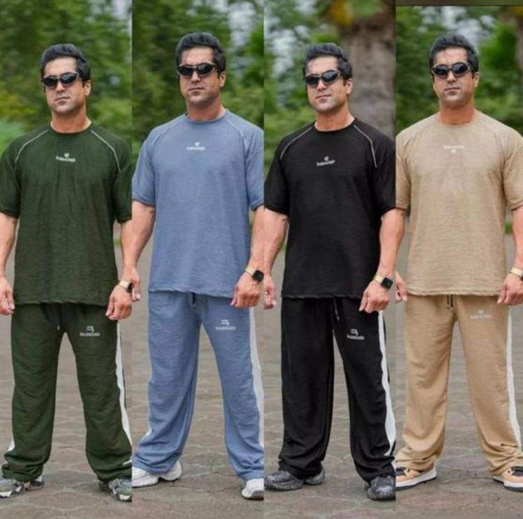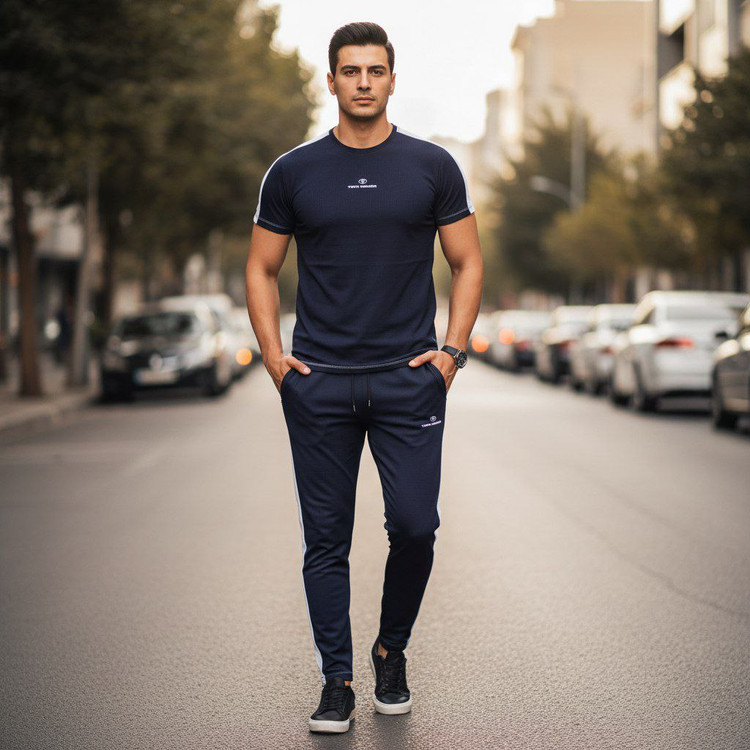 تیشرت و شلوار اسپرت مردانه جنس بیسکوییتی مدل بالنسیاگا