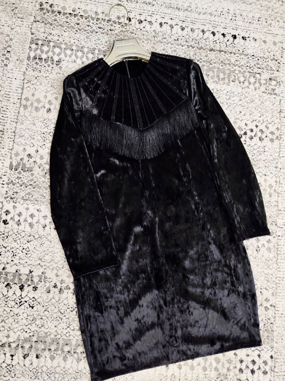 شناسه : #9359 نام : #گلی جنس : مخمل ابروبادی رنگ بندی : مشکی سایز ها : سایز دو 46 تا 52, سایز سه 54 تا 60, سایز یک 38 تا 44 خرجکار: نگین براق و نوار ریش ریشی پشت لباس زیپ مخفی دارد حدود قد : 85 الی 92