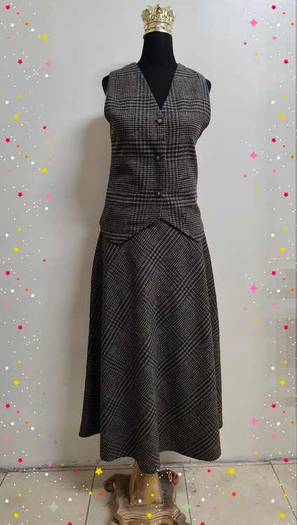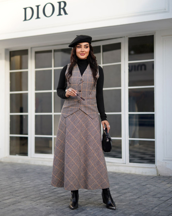 جلیقه و دامن زنانه جنس فوتر مدل چهارخونه