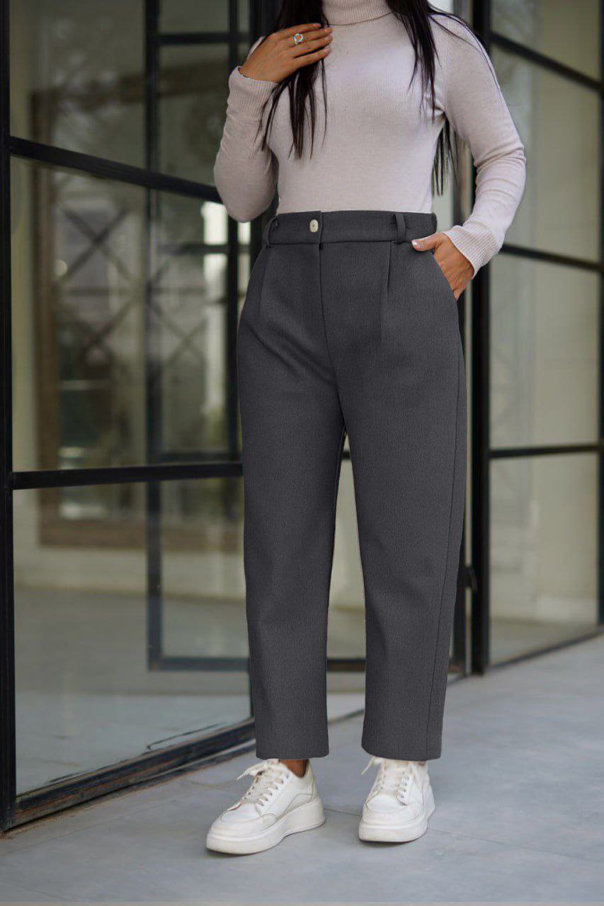 شلوار راسته زنانه جنس فوتر پاییزه مدل جیب دار