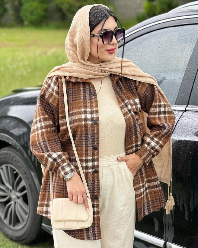 شکت پشمی چهارخونه زنانه مدل پاییزه