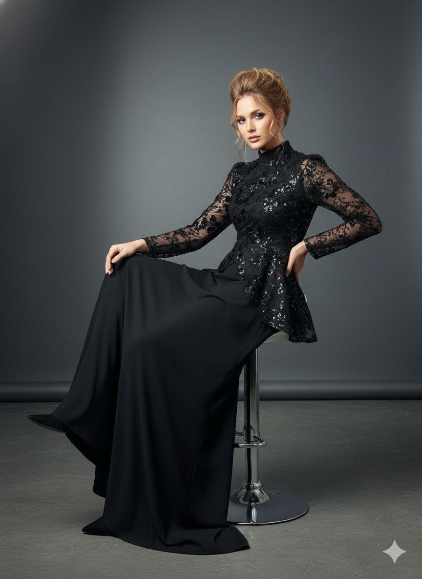 #️⃣شناسه کاربری : #803 🖋نام : پرنسس 👚جنس : تور منجوق دوزی و سنگ دوزی شده دامن مازراتی 🌈رنگ بندی : مشکی , 📏سایزها : 1(44-46) , 2(48-50) , 3(52) , 📝توضیحات : قد کار 160 پشت کار زیپ میخورد کار بسیار مزونی👌👌👌 دامن کلوش و پرچین😍 این لباس طوری طراحی شده که شکم و پهلو رو پنهان میکنه ✅