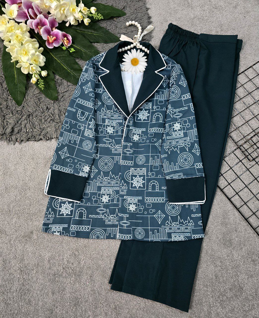 ✨شناسه : #9690 ✨نام : کت شلوار فاخر ✨جنس : مازراتی با کیفیت کت لایی کوبی شده ✨رنگ بندی : سبز کله غازی, سورمه ای, مشکی ✨سایز ها : فری 36/46 ✨ 🌸قد شلوار 103حدودا 🌸قد کت 70 سانت حدودا 🌸دور سینه 107 سانت حدودا 🌸قد آستین 55 سانت حدواد جلو کار کاملا لایی کوبی شده 🎈 شلوار بگ پشتش کش داره جلو هم دکمه و زیپ داره🎈 بسیار با کیفیت 🎈 خوش پوش🎈 خوش دوخت🎈 مزونی👌