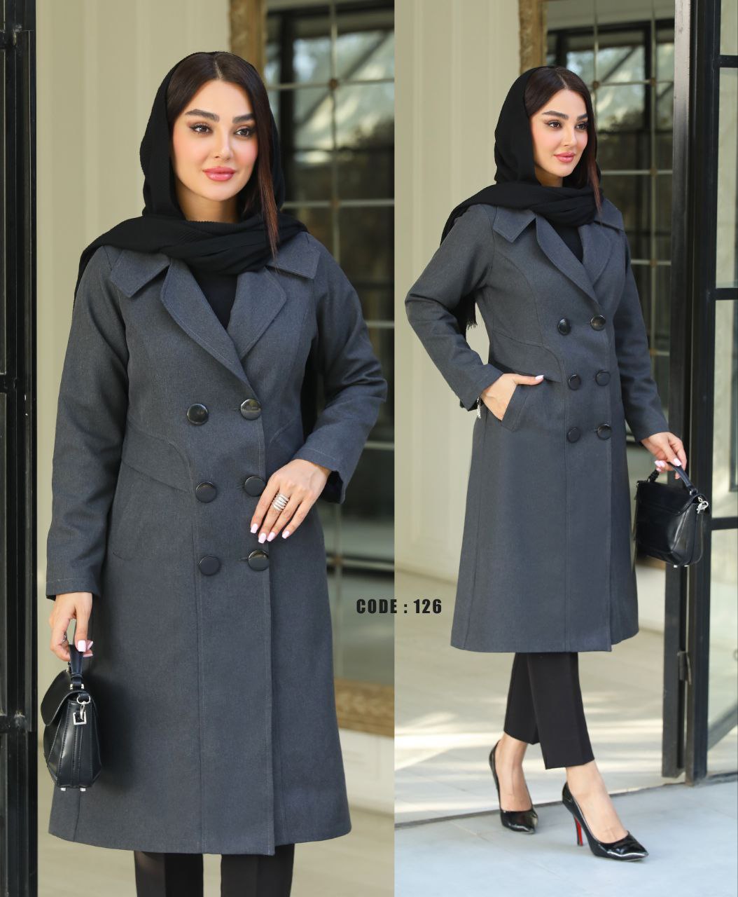 پالتو cod 126 جنس : توییت ساده رنگ : آبی درباری ، سورمه ای ، طوسی ، ذغالی سایز 40 تا 54 قد کار : حدودا ۱۰۰ داخل کار هم لایی پرشین خورده و هم کامل آستر کشی شده سایز 1 مناسب ۴۰ ۴۲ سینه ۹۸ کمر ۹۲ باسن ۱۰۸ بازو ۳۸ سایز 2 مناسب ۴۴ ۴۶ سینه ۱۰۶ کمر ۹۸ باسن ۱۱۸ بازو ۴۰ سایز 3 مناسب ۴۸ ۵۰ سینه ۱۱۴ کمر ۱۰۴ باسن ۱۲۴ بازو ۴۲ سایز 4 مناسب ۵۲ ۵۴ سینه ۱۲۵ کمر ۱۱۶ باسن ۱۳۴ بازو ۴۴ کار حدودا ۸ سانت رو هم گرد داره و سایز با جابه جایی دکمه کوچیک و بزرگ میشه😍