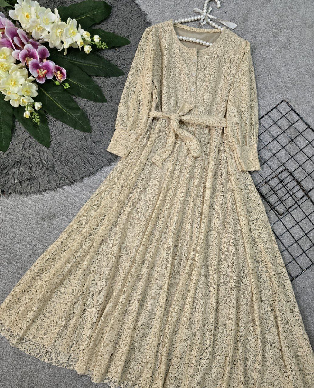 مانتو پیراهنی بلند جنس گیپور آستردار