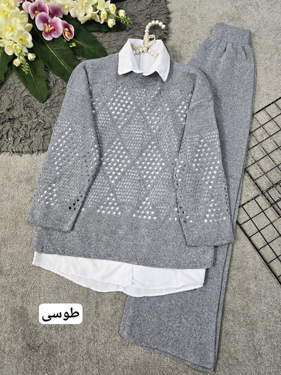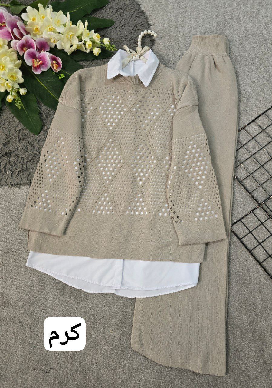💞شناسه : #9691 💞نام : ست بافت سمانه 💞جنس : بافت 💞رنگ بندی : سبز, طوسی, کرم, مشکی 💞سایز ها : فری 36/46 💞 🌹قد بلوز حدود ۶۵ سانت 🌹دور سینه حدود ۱۲۴ سانت 🌹قد آستین از سرشانه حدود ۶۰ شانت 🌹قد شلوار حدود ۱۰۵ سانت 🌹دور ران حدود ۵۶ سانت 🌹دمپا حدود ۲۵ سانت ست بلوز شلوار دو تیکه ❤️ شومیز ندارد ❌❌❌ طبق غیر ژورنال🔹