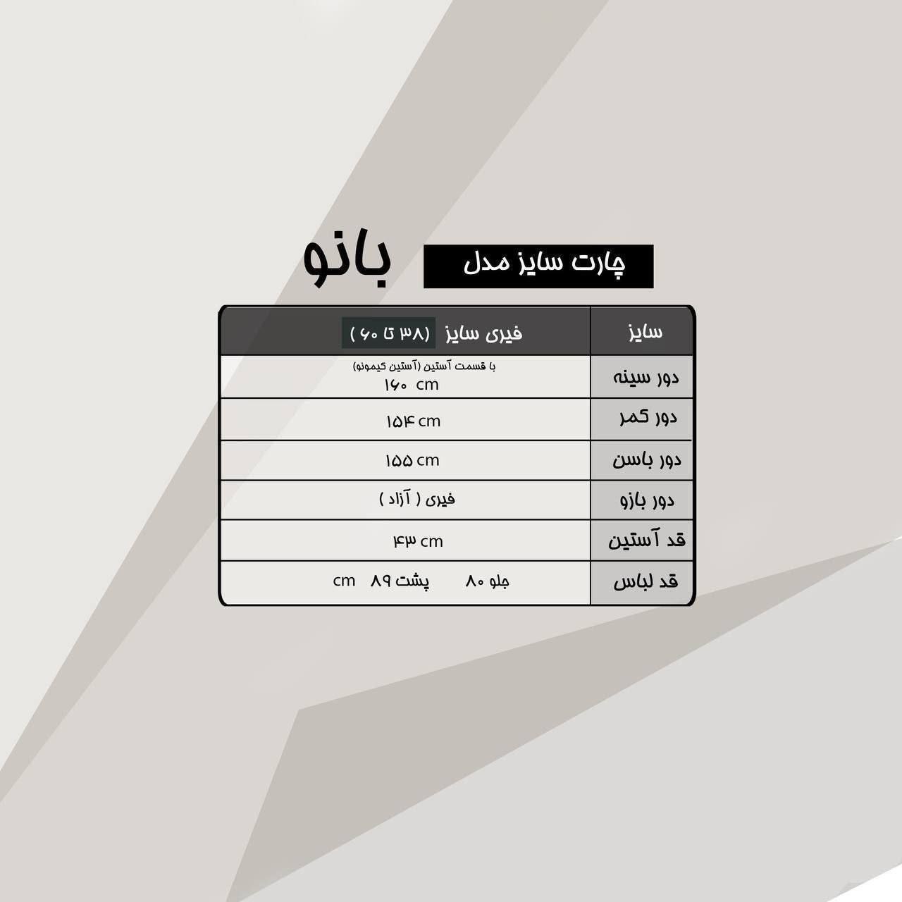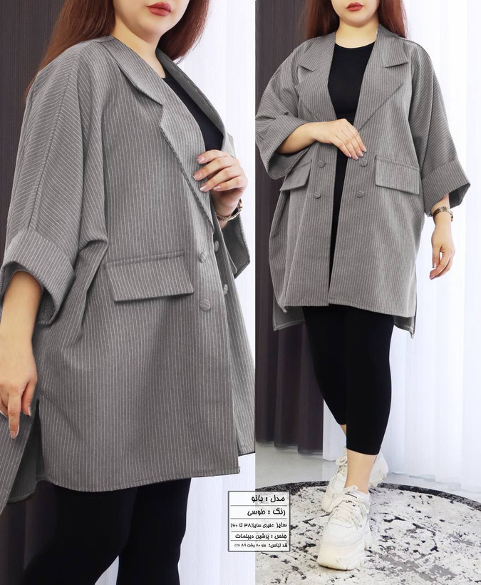 شناسه : #6483 نام : #بانو جنس : پرشین دیپلمات رنگ بندی : سورمه ای, طوسی, قهوه ای, کالباسی, مشکی سایز ها : فیری سایز 38 تا 60 حدود قد : جلو ۸۰ پشت ۸۹ جیب ها نما هستند