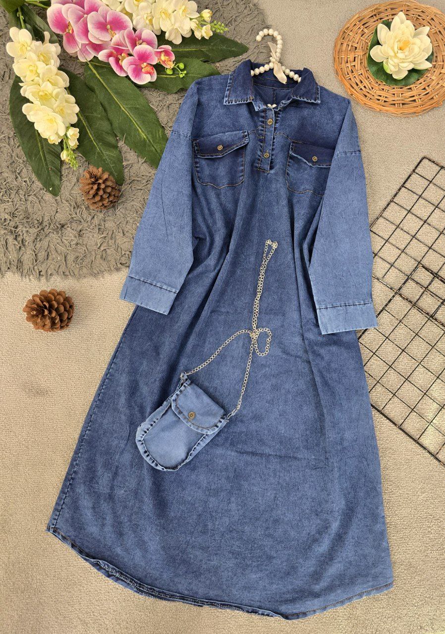 مانتو پیراهنی بلند جنس لی کاغذی سنگشور شده