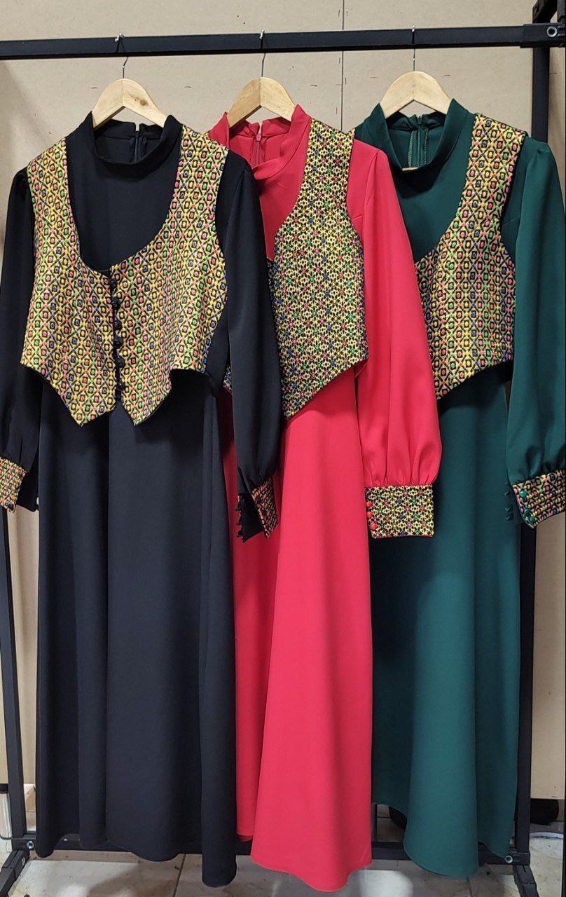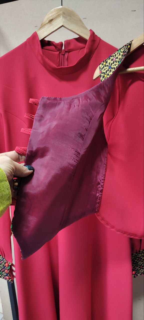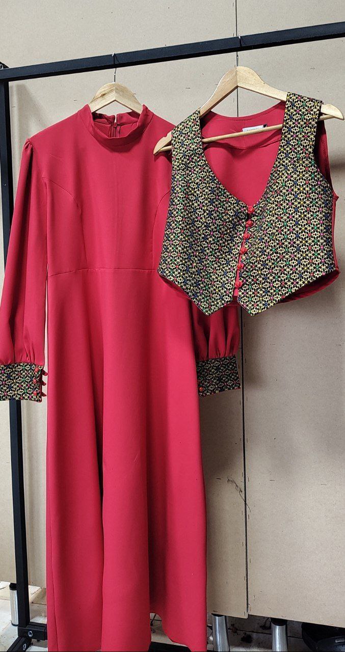قد:سارافون۱۲۵~۱۲۷...زیپ ۵۰سانتی از قسمت کمر...دکمه های مچ کاربردی...قد جلیقه:بلندترین قسمت ۵۰....قسمت جلوی جلیقه آستر کشی و لایی کشی شده ..دکمه های جلو کاربردی