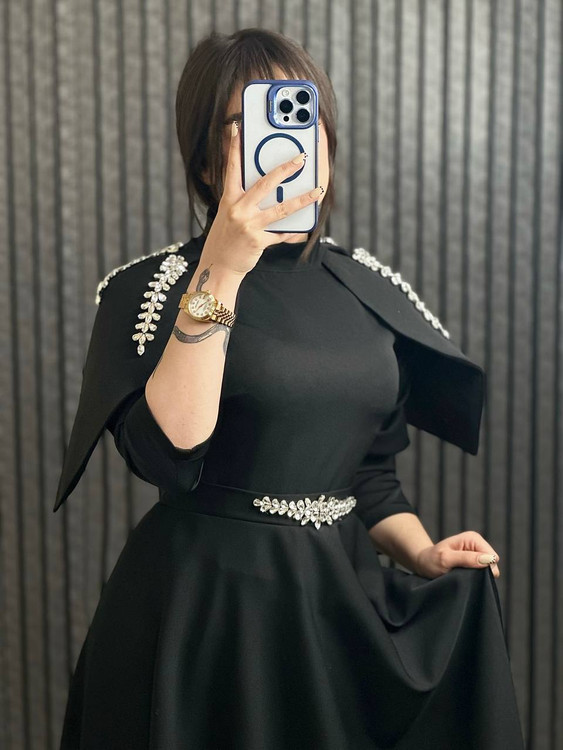 #️⃣شناسه کاربری : #532 🖋نام : فرشته 👚جنس : مازاراتی گرم بالا 👌 🌈رنگ بندی : مشکی , 📏سایزها : 38 , 40-42 , 44-46 , 48-50 , 📝توضیحات : قد کار 160 قد آستین 62 دور سینه سایز 40-42👈98 دور سینه سایز 44-46👈112 دور سینه سایز48-50👈120 نگین دوزی شده