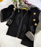 ❣شناسه : #6485 ❣نام : کت کژال ❣جنس : مازراتی اعلا مغزی دوزی شده و نگین کاری ❣رنگ بندی : مشکی ❣سایز ها : فری 36تا46 ❣🚫⭐️ قدکار 78✅قد آستین 55✅ دور سینه110 سنگ کاری سر آستین یا مثل غیر ژورناله یا ژورنال که به صورت رندوم ارسال میشه 👌