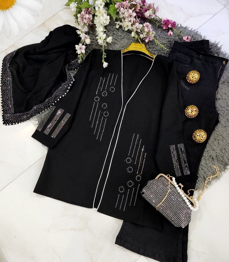 ❣شناسه : #6485 ❣نام : کت کژال ❣جنس : مازراتی اعلا مغزی دوزی شده و نگین کاری ❣رنگ بندی : مشکی ❣سایز ها : فری 36تا46 ❣🚫⭐️ قدکار 78✅قد آستین 55✅ دور سینه110 سنگ کاری سر آستین یا مثل غیر ژورناله یا ژورنال که به صورت رندوم ارسال میشه 👌