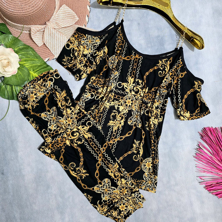 🏷 شناسه: #10008 💎 نام: تاپ شلوارک زنجیری طرحدار 📋 توضیحات: فری سایز38 تا 48💠💠💠 قدتاپ52 دورسینه84 با کشسانی140 قدشلوارک60 💎 جنس: فلامنت فووووول کش اعلا 💎 رنگ بندی: زنجیری ⚜️ سایز ها: فری سایز 💰 ۱۸ آذر