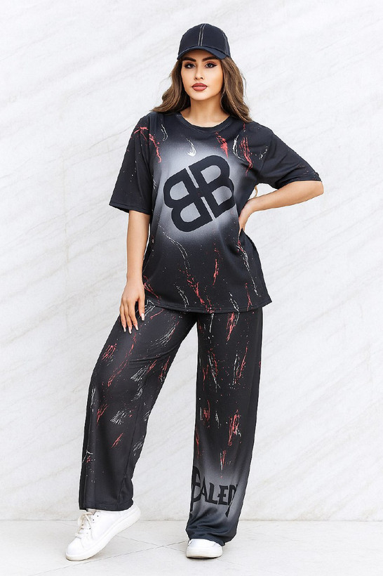 ست تیشرت و شلوار اسپرت زنانه مدل آبرنگی