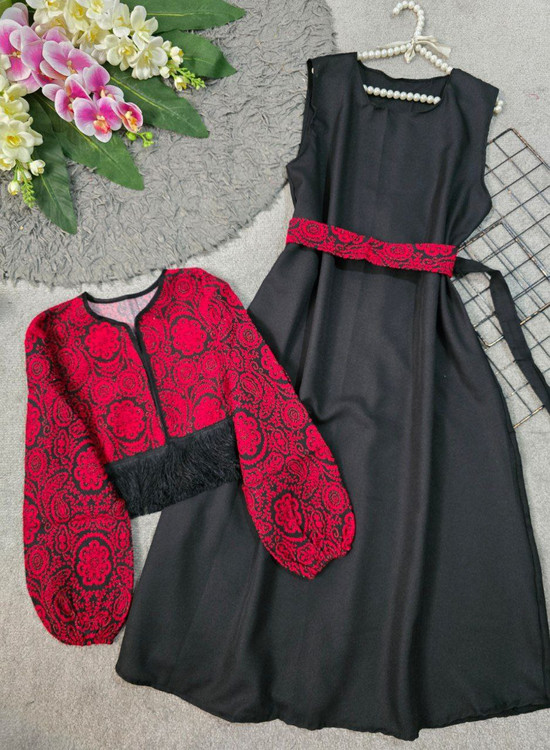❤️🅰️🅰️🅰️❤️🅰️🅰️🅰️🅰️🅰️❤️ 💞شناسه : #7988 💞نام : کت سارافون یلدایی 💞جنس : کت تافته سارافون کرپ اندونزی 💞رنگ بندی : قرمز مشکی 💞سایز ها : فری 36تا46 💞 🌹قد کت با ریشه حدود ۴۲ سانت 🌹دور سینه کت حدود ۱۰۰ سانت 🌹قد آستین حدود ۵۰ سانت 🌹قد سارافن حدود ۱۲۵ سانت 🌹دور سینه حدود ۱۱۰ سانت ❌️کشسانی ندارد با کمربند ❤️🌹 🔴