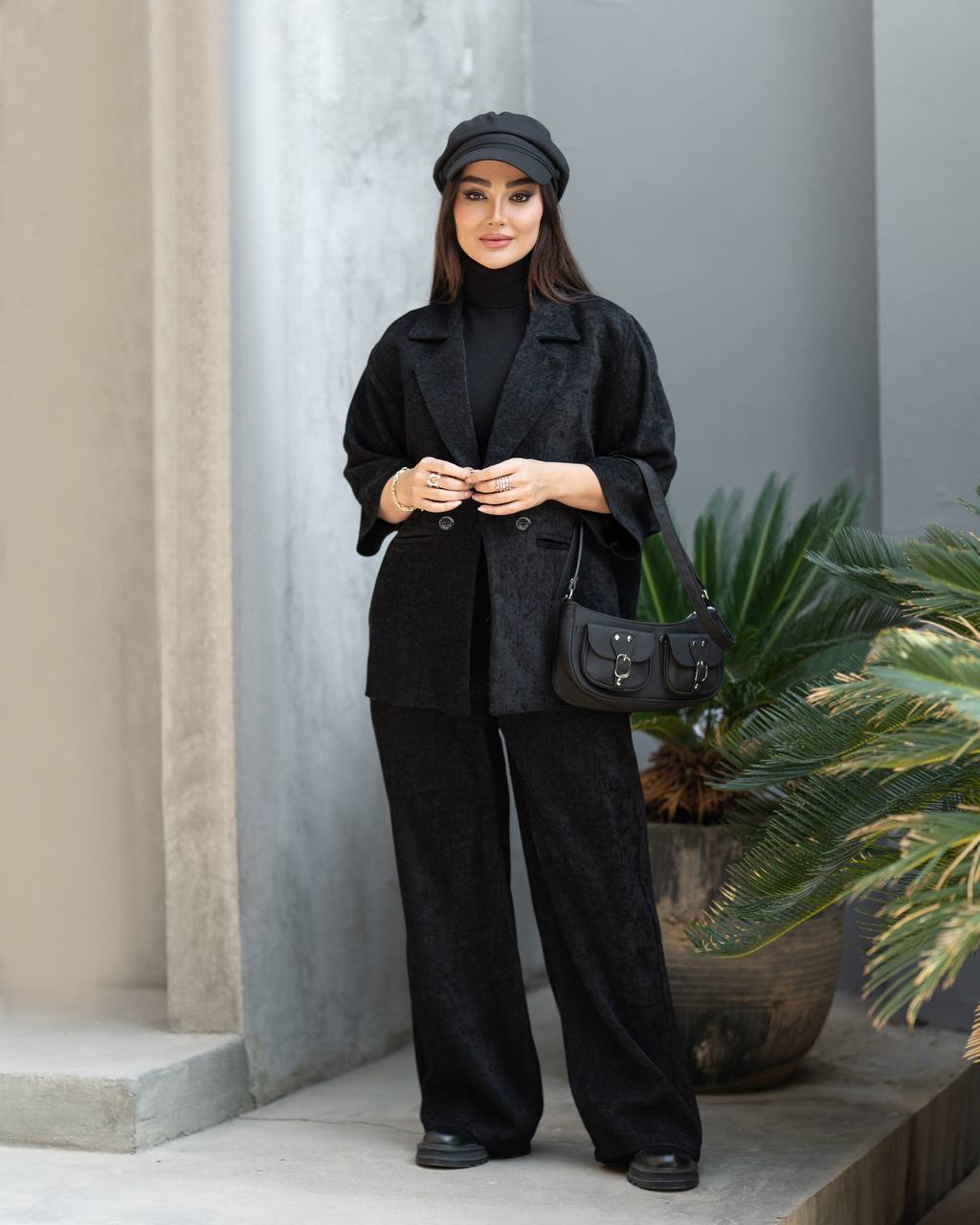 کت و شلوار مجلسی زنانه جنس مخمل خاویاری
