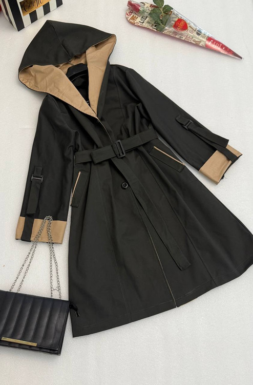 پالتو کتان کلاهدار زنانه