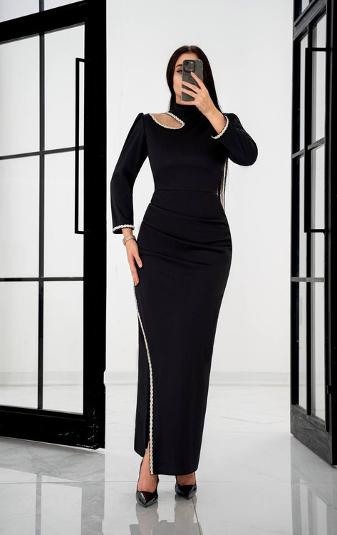 شناسه : #9217 نام : 🎀 ایزابلا جنس : غواصی و خرجکار نگین رنگ بندی : مشکی سایز ها : (۱)۳۸_۴۰, (۲)۴۲_۴۴, (۳)۴۶_۴۸, (۴)۵۰_۵۲ قدکار / ۱۴۰ ، قسمت باز سرشونه تور کار شده،پشت کار زیپدار