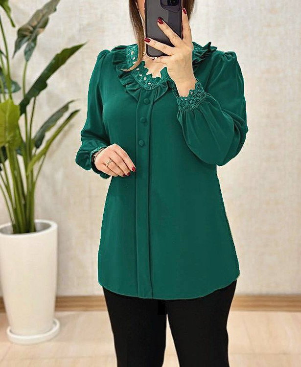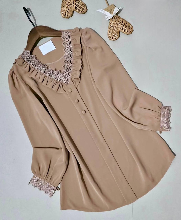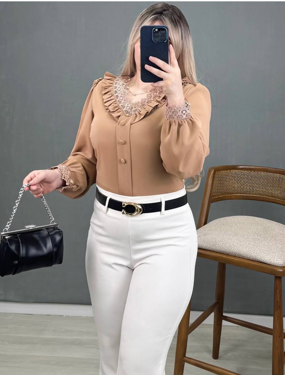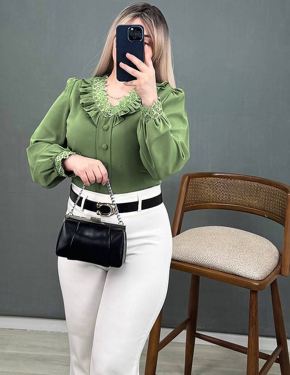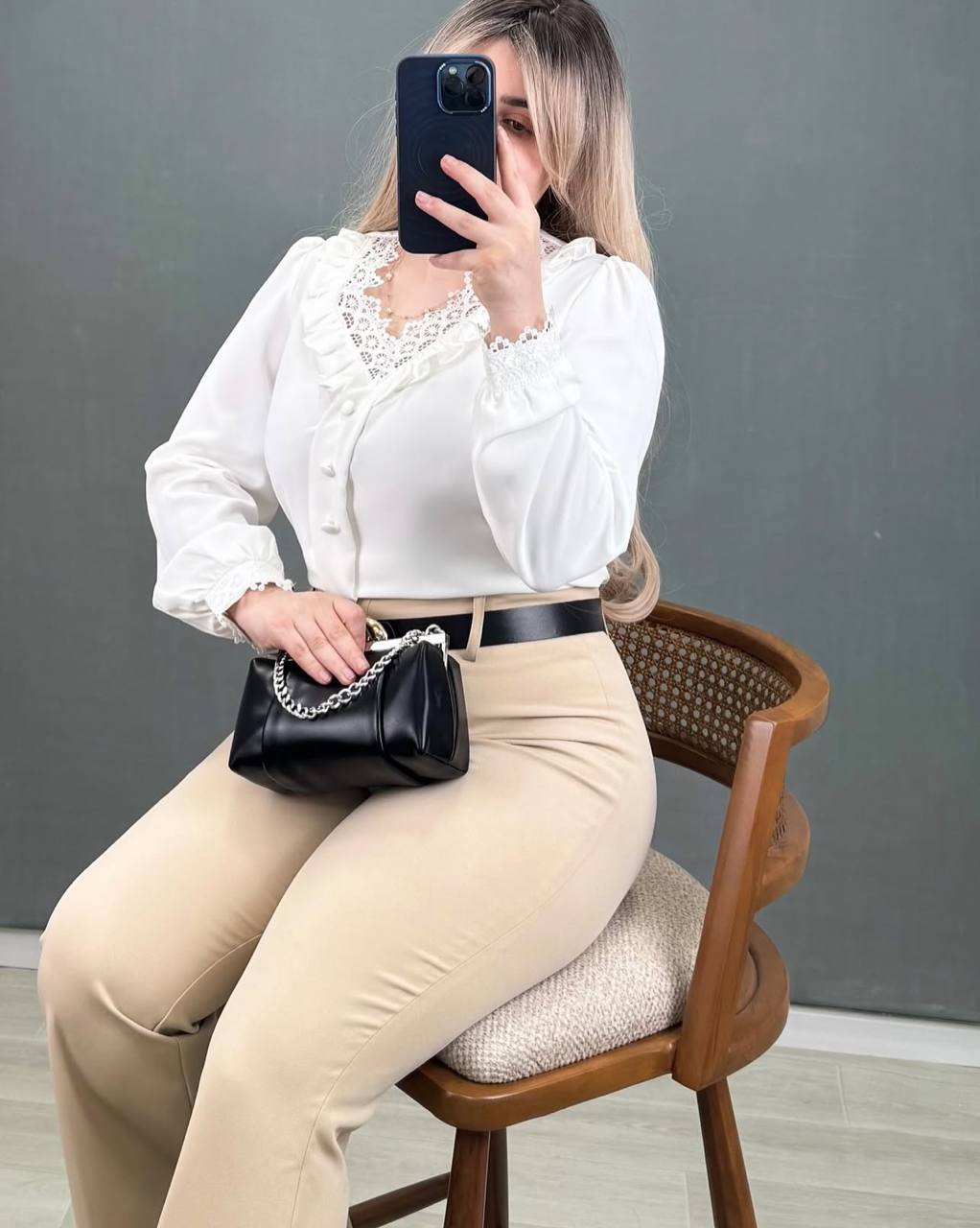شومیز مزون دوز 🦋 آنجل🦋 کاری بسیار شیک و متفاوت 🫶 💥جنس الیزه مصری اعلا گرم بالا 💥 خرج کار گیپور ترک وارداتی کرم /یشمی /پسته ای/ مشکی /سفید/کالباسی سایز1 (40 تا 44)دور سینه 100 سایز 2(46 تا 48)دور سینه 108 سایز 3(48 تا 52) دور سینه116 ✅قد شومیز75 ✅پشت کار زیپ مخفی داره 💲