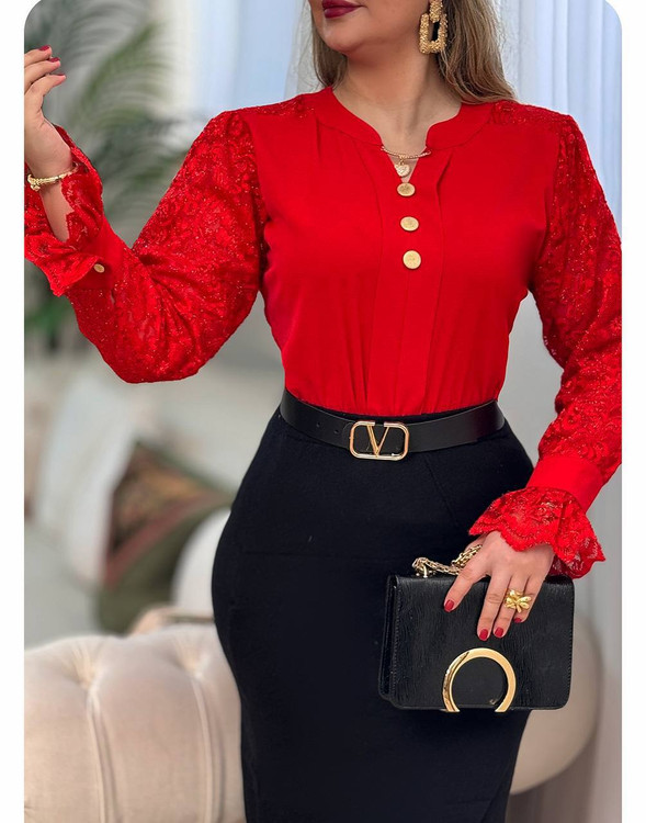 شومیز مزون دوزحنا 👌کاری بسیار شیک و متفاوت 🫶 💥جنس الیزه مصری اعلا گرم بالا 💥 خرج کار گیپور ترک وارداتی ❌زیر تور استین استری دار و بدن نما نمیباشد❌ ✅قدشومیر68 قد استین بدون حساب سرشانه 58 🌈سفید قرمز یشمی سایز1 (40 تا 44)دور سینه 100 سایز 2(46 تا 48)دور سینه 108 سایز 3(48 تا 52) دور سینه 114 💲