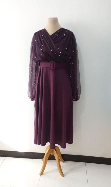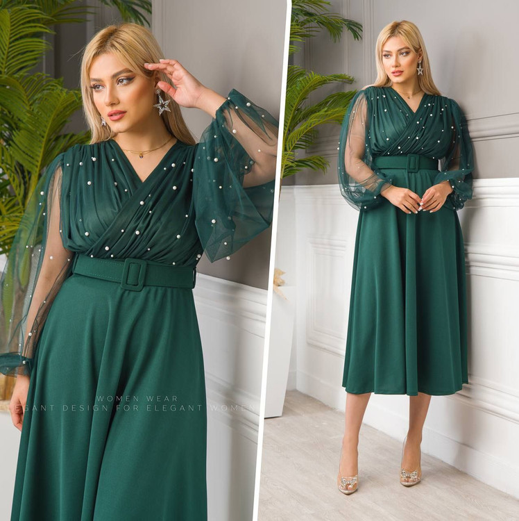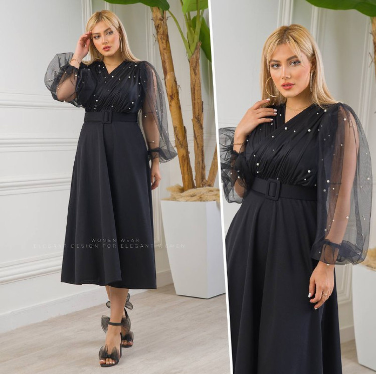 پیراهن مجلسی زنانه مدل لیبرا جنس تور و کرپ کش